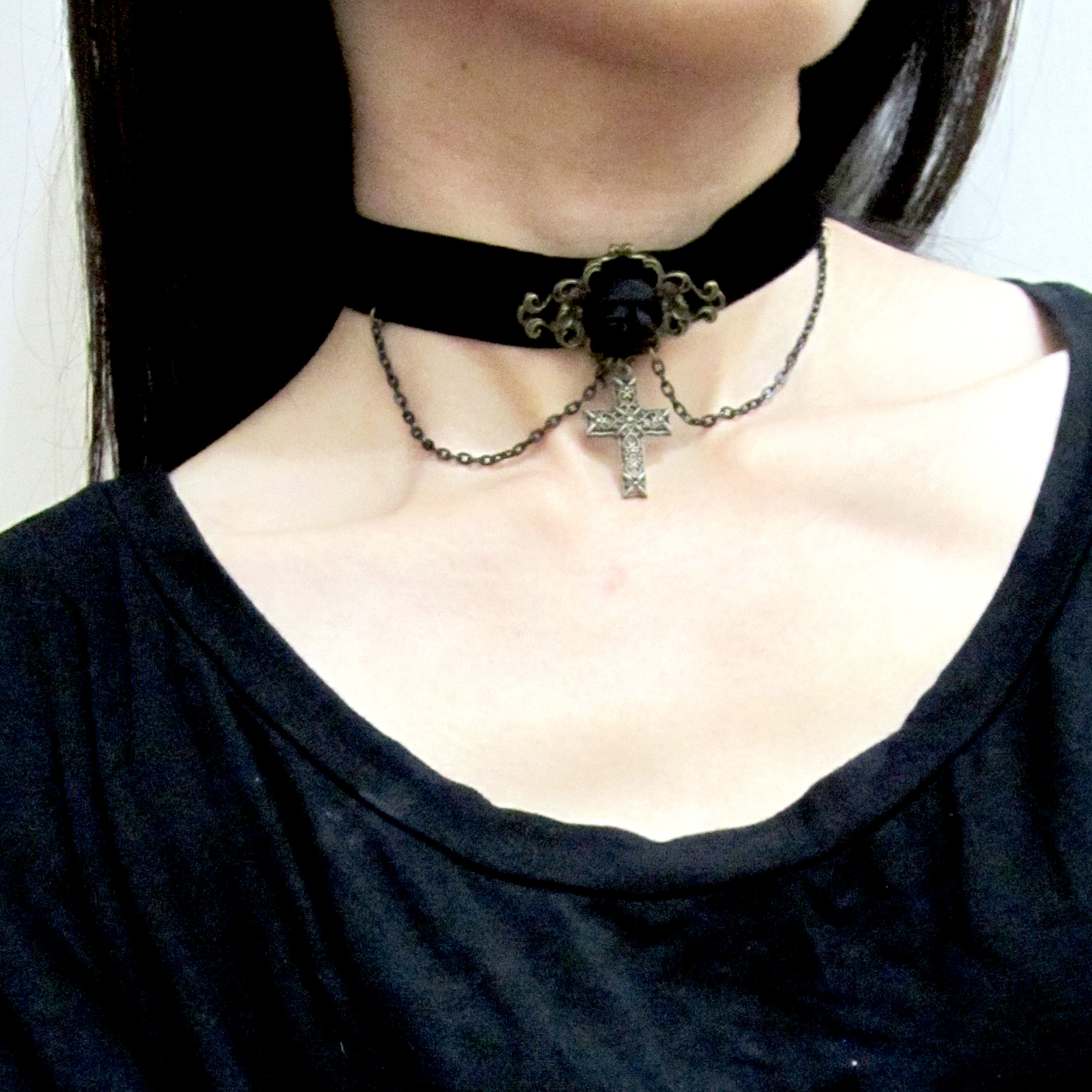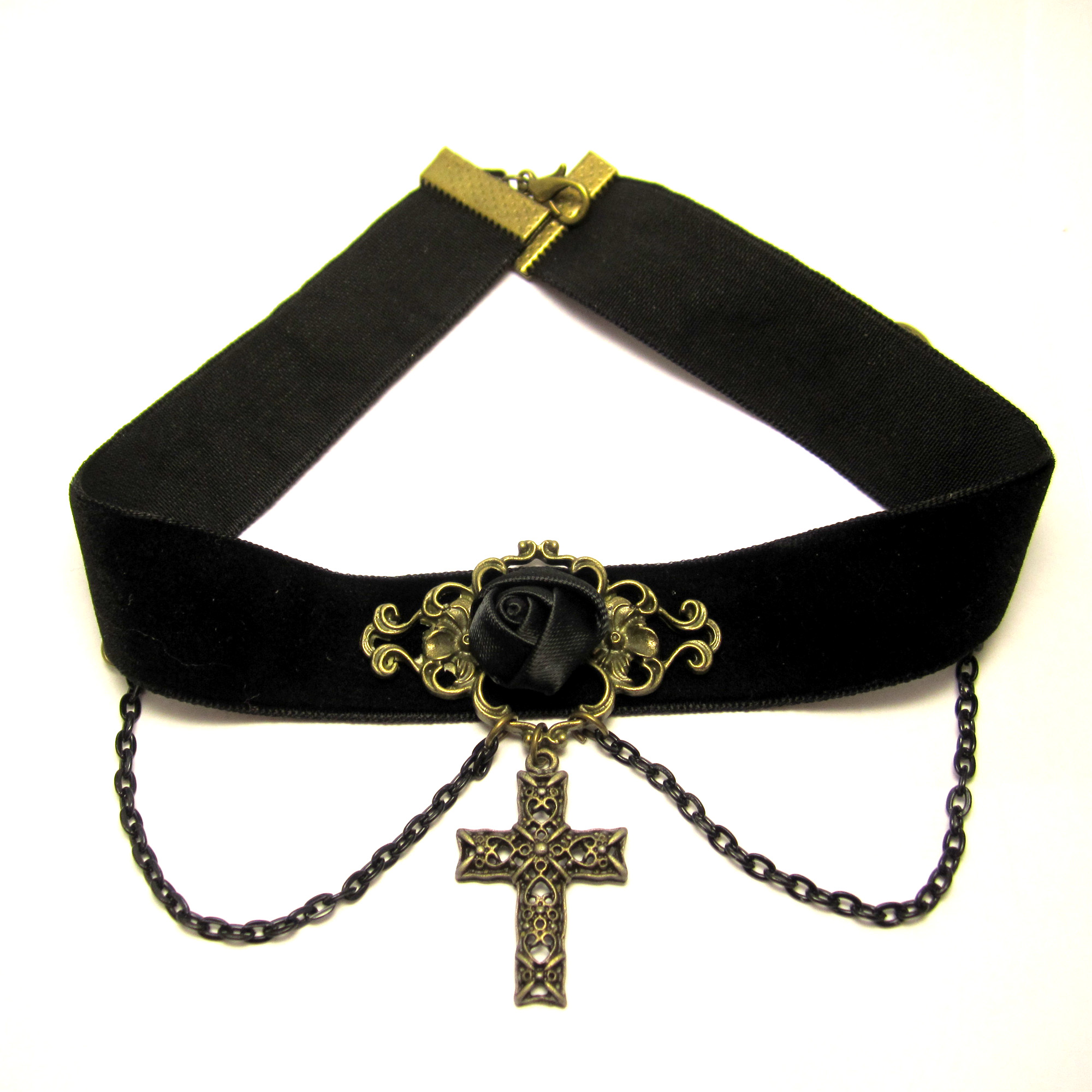 Gothic Black Rose & Cross Choker Victorian